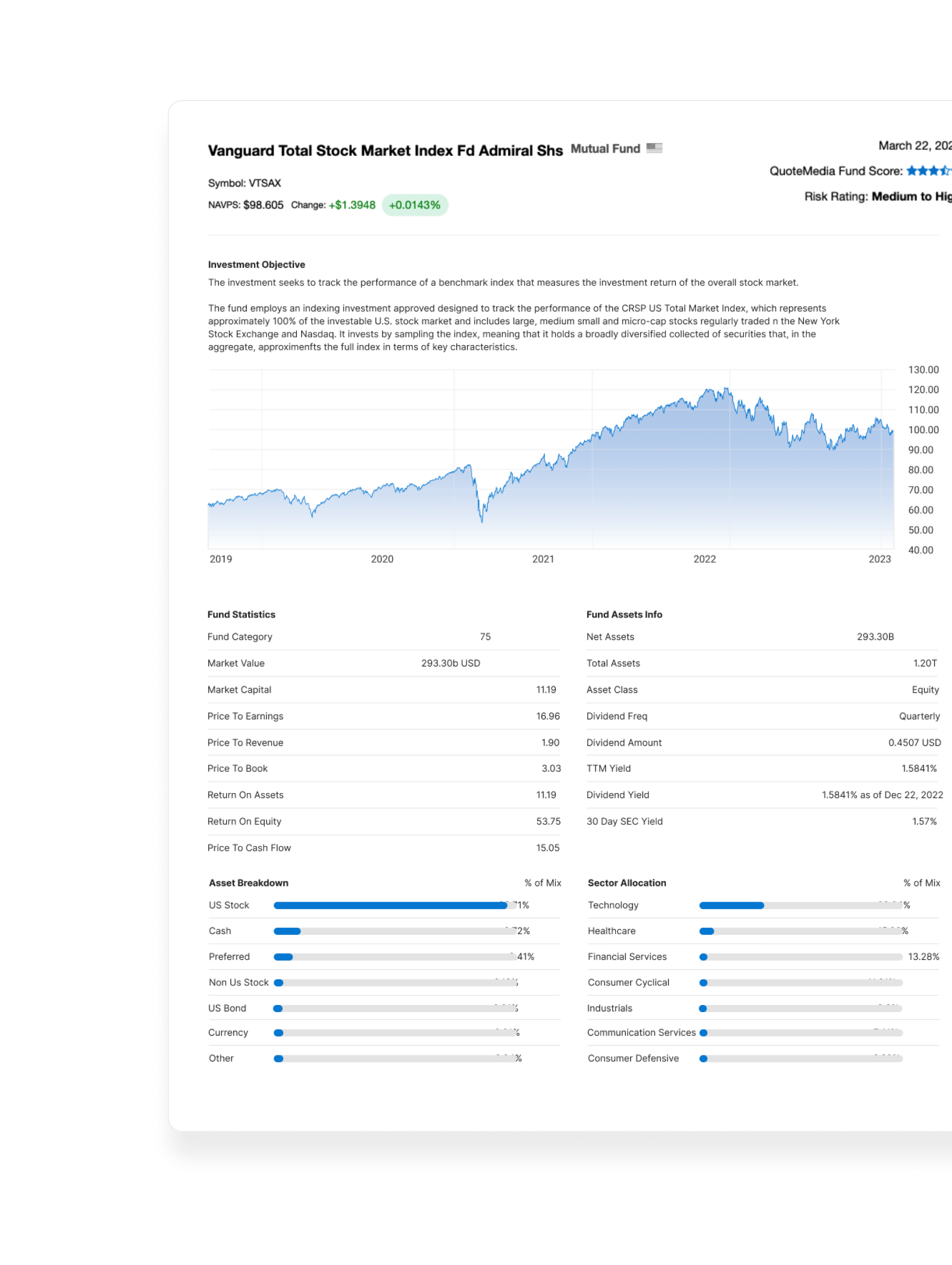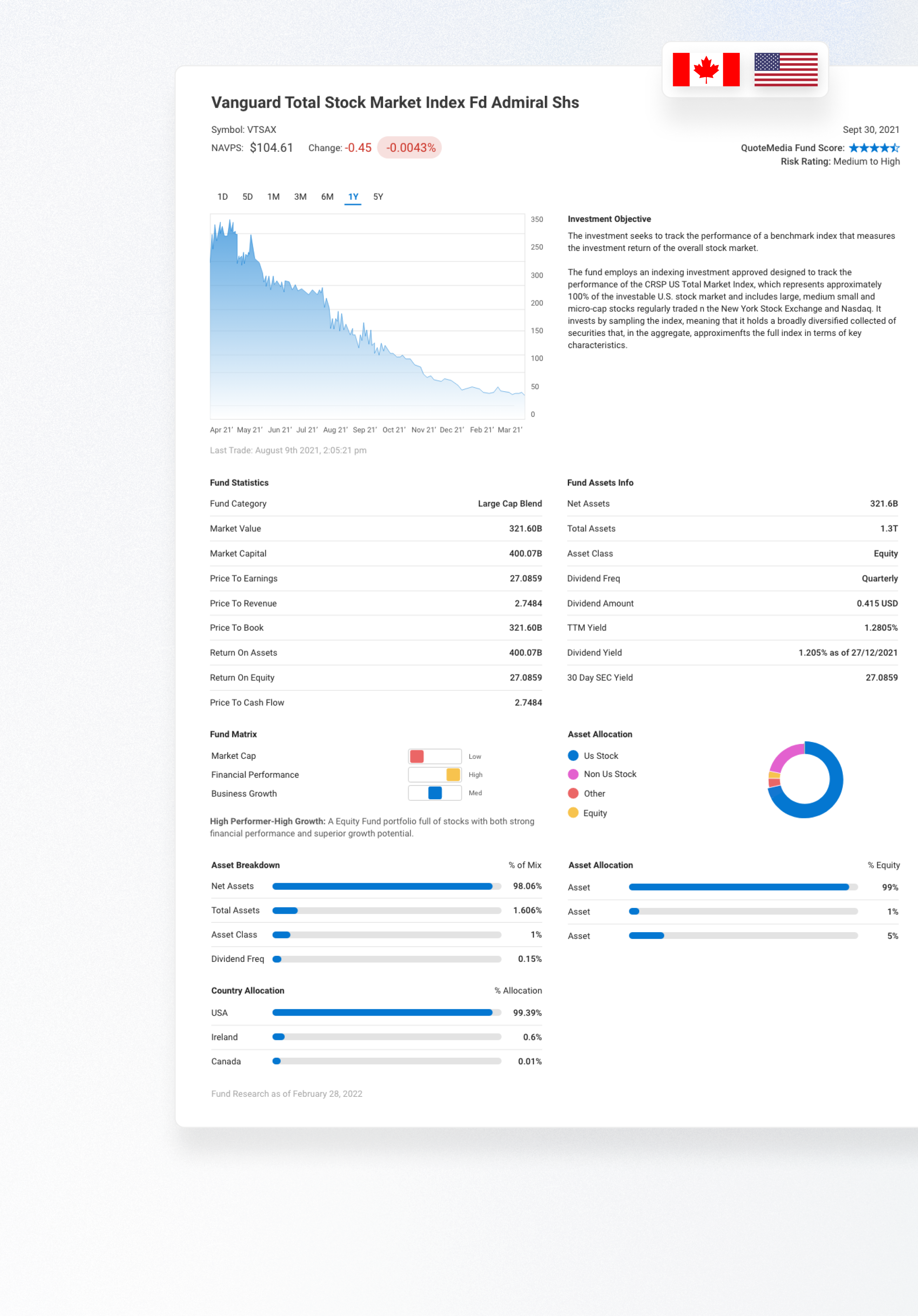 QuoteMedia Fund Research (QMFR) provides a comprehensive database offering detailed insight into U.S. and Canadian Mutual Funds, Exchange Traded Funds and other fund investment products.