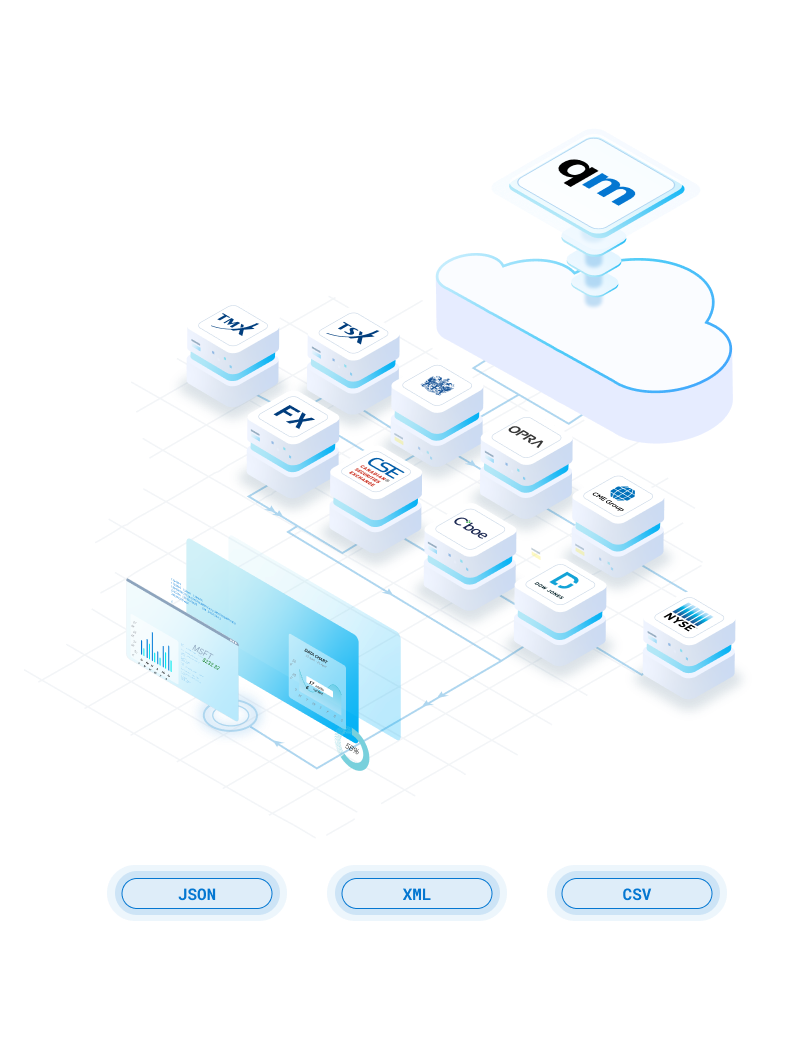 Simple API support to access multiple asset classes from global exchanges and related financial market information.
