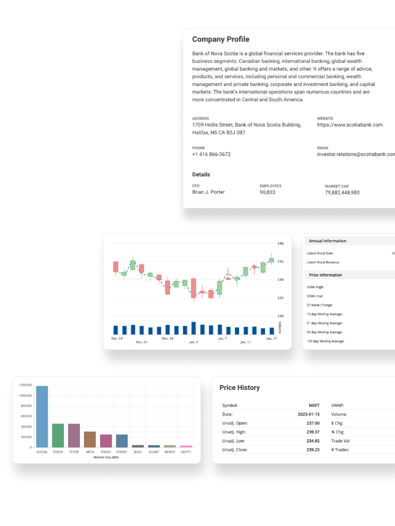 Our data powers some of the financial industries largest self directed brokerage firms, asset managers, clearing houses, trading groups, media portals, public companies and financial service corporations.