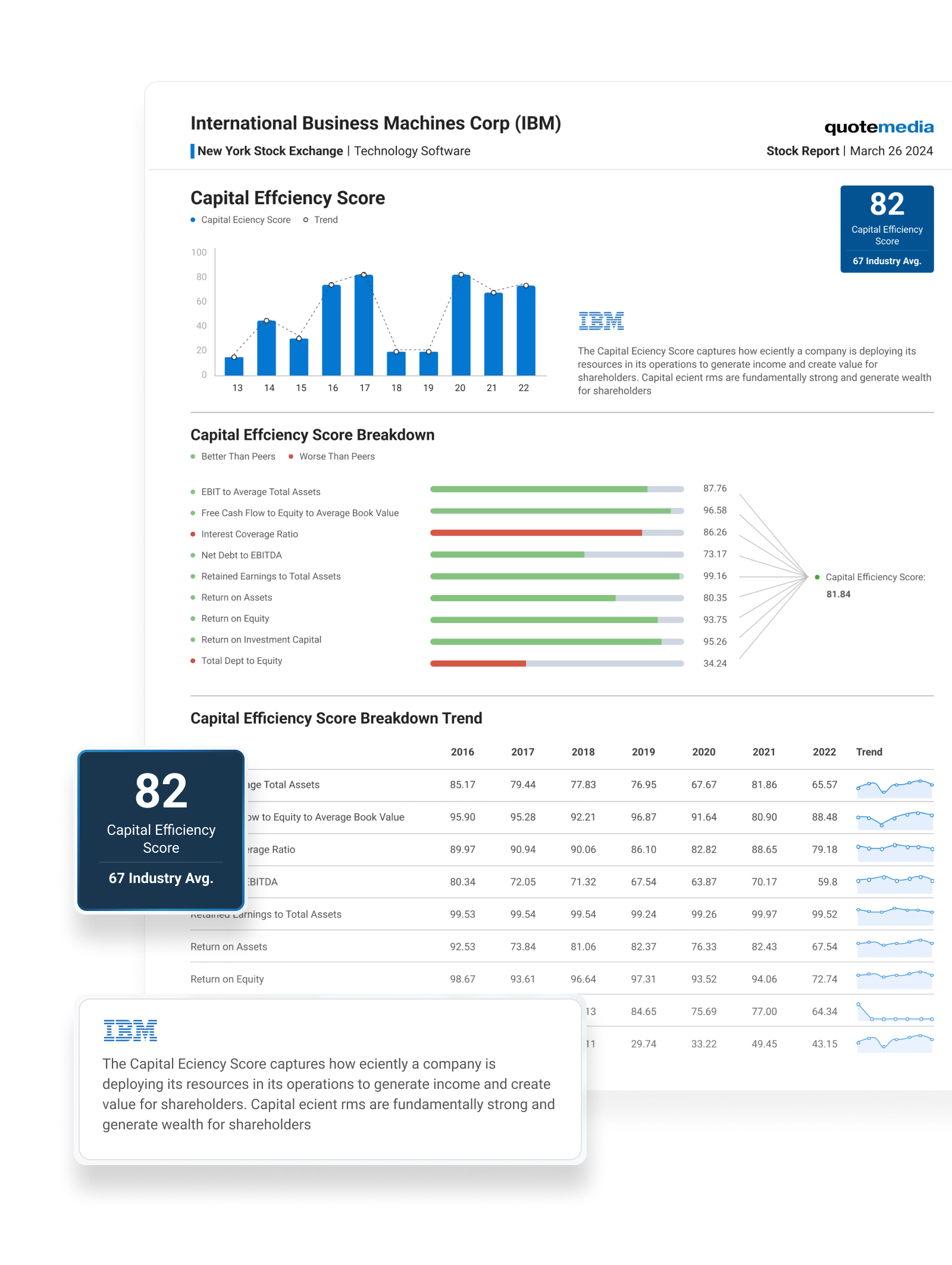 This ratings category showcases how efficiently a company deploys its resources to generate income and create shareholder value. The firms that are capital efficient are found to be fundamentally stronger and produce more wealth for shareholders than the competition.