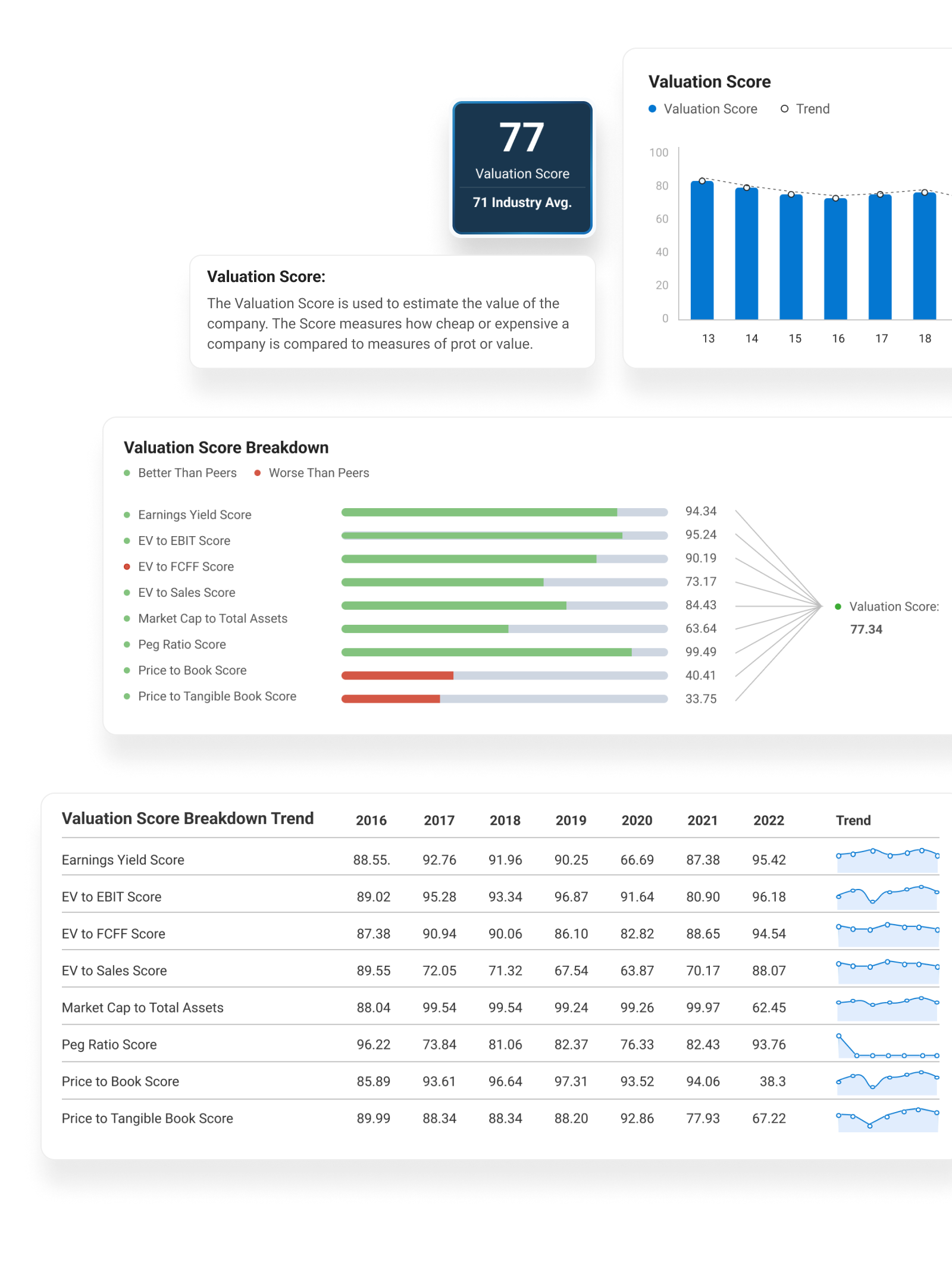 This ratings category estimates a company's intrinsic value relative to its competition to obtain its fair value using various valuation multiples. Evaluating a company based on specific metrics underscores its financial strength, which is essential for sustained business success.