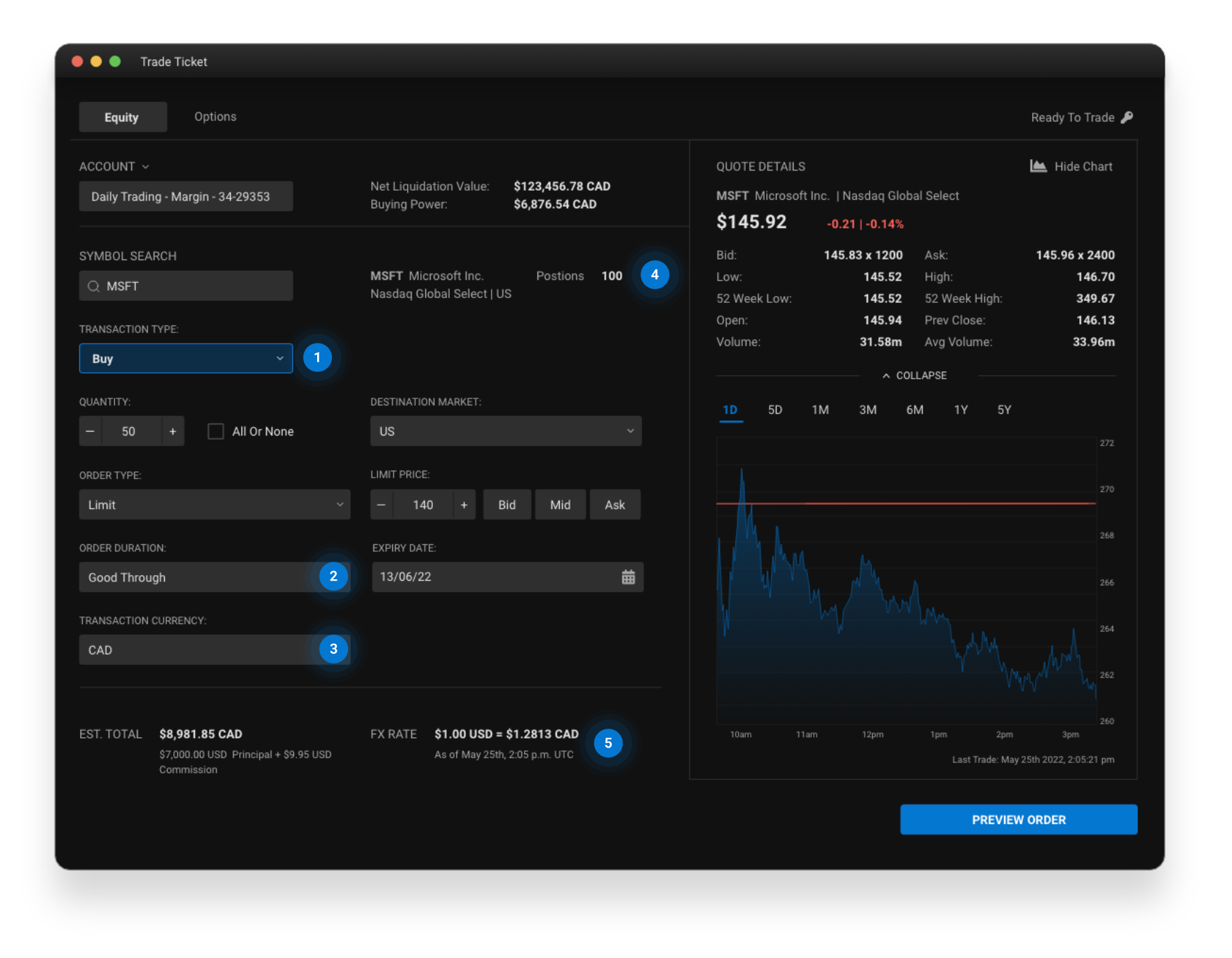 Good Until Canceled (GTC), Good Until Data/Time (GTD), Good After Time/Date (GAT), Immediate or Cancel (IOT) and more.