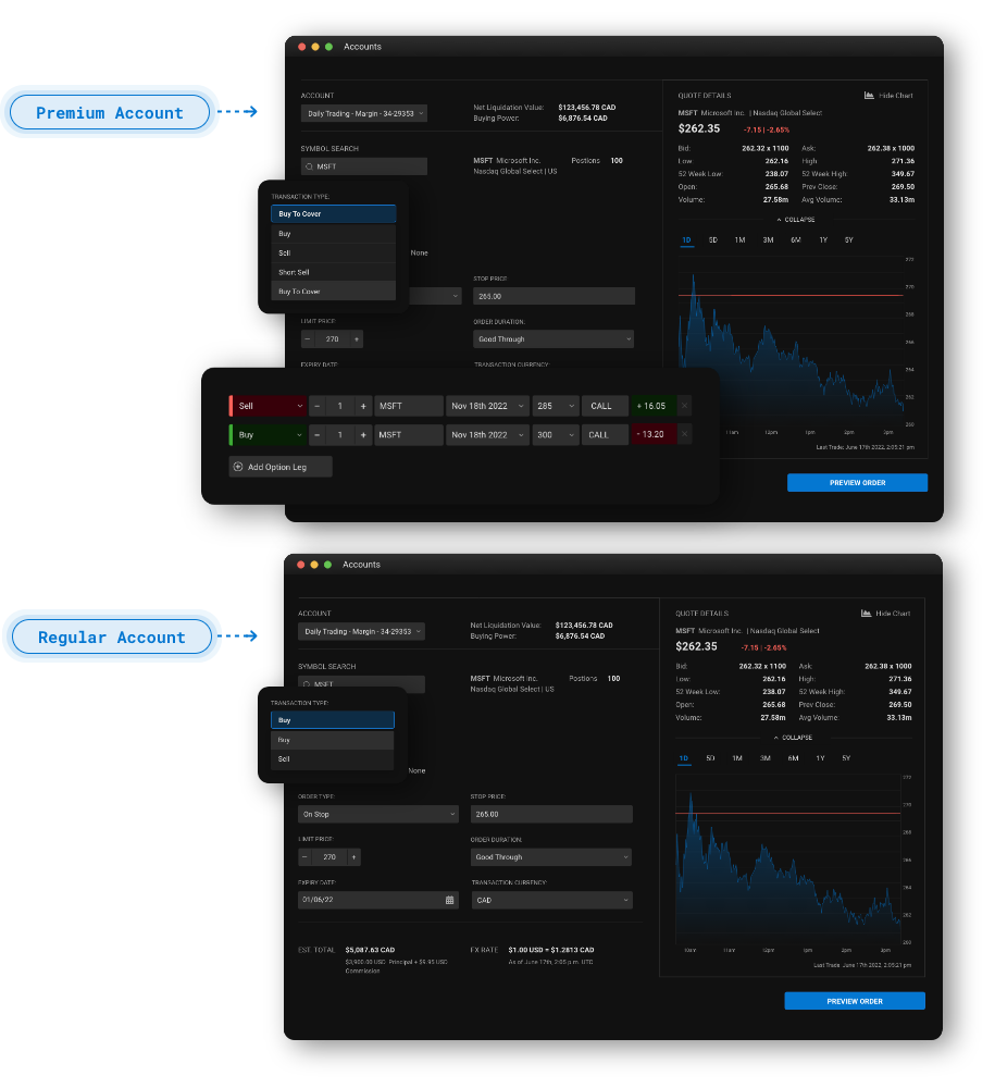 Limit a client's access to order types, exchange data and advanced trading tools based on user experience or pre-determined client tiers.